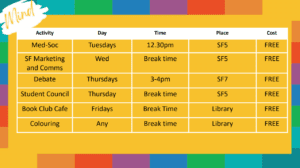 This club is for students of all abilities. They meet weekly and enjoy colouring and conversation as a means of developing artistic skills, or often just as a means of catharsis